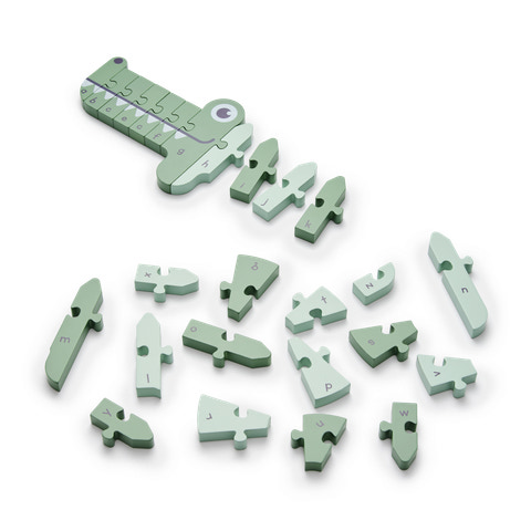 A,B,C, puslespil formet som en fin grøn krokodille, perfekt til at udvide barnets færdigheder.
