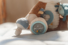Kram og leg med denne aktivitetsræv, der gemmer på mange spændende overraskelser. På skulderen finder du en knitrende bille, og ræven laver en raslende lyd, mens etiketterne indbyder til at blive rørt ved og følt på. Ringene omkring benet, spejlet på den ene fod og den grønne hale er blot nogle af de detaljer, der vil vække den lilles nysgerrighed. Efter al den leg vil den søde ræv inspirere til de mest fortryllende drømme om en magisk skov, hvor skovens venner leger.
