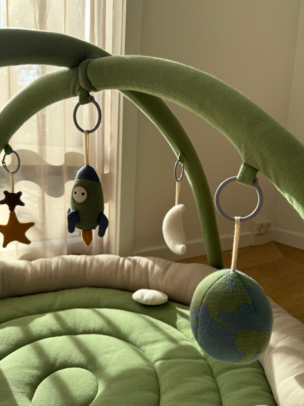 Aktivitetsfilt från Vanilla Copenhagen som stimulerar ditt barns sinnen, kreativitet och utveckling på alla nivåer. Aktivitetsfilten är utrustad med mjuka leksaker i olika höjder som uppmuntrar ditt barn att utforska och ta tag i leksakerna. Detta hjälper till att utveckla deras motorik och hand-öga-koordination på ett roligt och interaktivt sätt.