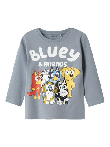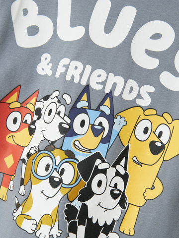 Toppen er lavet af blødt og elastisk jersey, der sikrer en behagelig fornemmelse og fri bevægelighed hele dagen. Motivet hylder eventyrene med Bluey, den elskelige og utrættelige seksårige Blue Heeler-hvalp, der oplever livet sammen med sin familie.