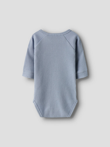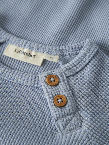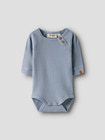 Balto langærmet body fra Lil' Atelier i Zen Blue er lavet af blød, økologisk bomuld. Perfekt til sart babyhud og nem at tage af og på med trykknapper.