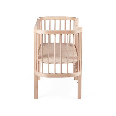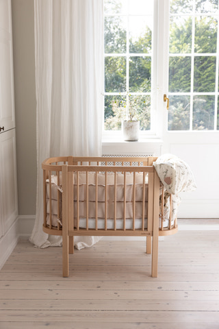 Sebra Bedside Crib er inspireret af den ikoniske Sebra Seng. Det formbøjede træ og de elegante tremmer skaber et smukt design, der passer perfekt ind i ethvert soveværelse. Du vælger selv, om sengen skal bruges som bedside crib med én sænket side, eller som en klassisk tremmeseng med begge sider hævede. Det giver fleksibilitet, mens du lærer din baby og jeres rytme at kende.