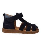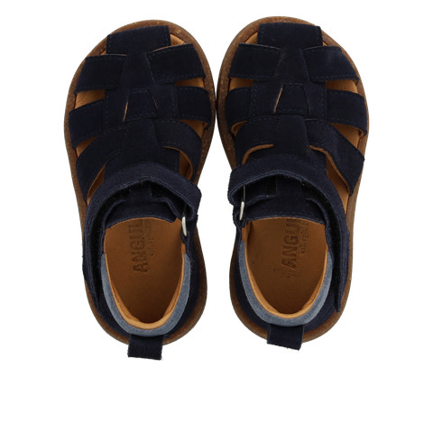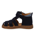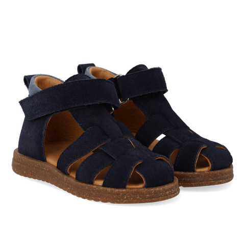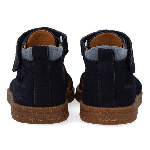 Begyndersandal i ruskind. Sandalen har en justerbar velcro for optimal pasform. Derudover har den en lukket tå, polstret indersål, kromfrit læderfoer, en fast hælkappe og en polstret krave for ekstra komfort og støtte. Sandalens sål er en let og fleksibel gummi- og korksål.