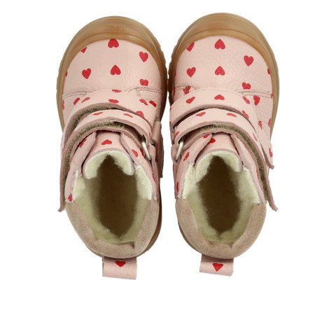 Begynder TEX-støvle med velcro fra Angulus er den perfekte støvle til de mindste, der skal ud at opleve verden. Støvlen er lavet i blødt skind med et charmerende rose hearts/dusty mauve-print, som både er sødt og stilfuldt. Den vandafvisende TEX-membran holder små fødder tørre på regnfulde dage, mens den fleksible gummisål sikrer god bevægelsesfrihed og komfort. De to velcrolukninger gør det nemt for barnet selv at tage støvlerne af og på, og sikrer samtidig en god pasform. En ideel begyndersko til både leg og hverdag, hvor kvalitet og funktionalitet går hånd i hånd.