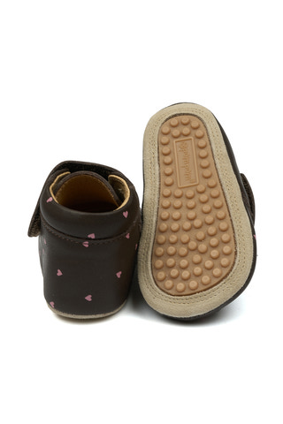 Pom Pom® Beginners™ Velcro sutsko i 100% læder både indeni og udenpå. Fuldt skridsikkert gummisål. Lukkes med velcro over vristen. Blød og fleksibel til de små fødder. Passer normalt.