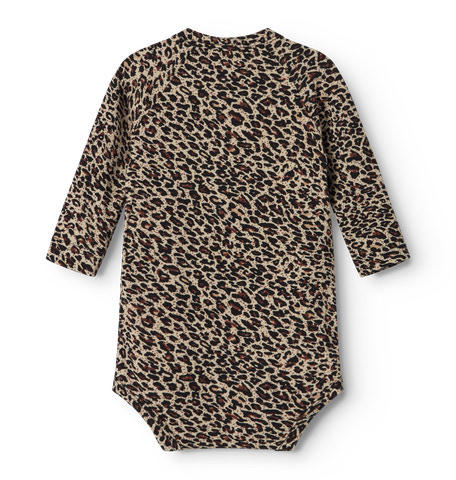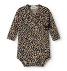 Langærmet bodystocking til nyfødte med slå-om-lukning. Lukkes med trykknapper og bindebånd Let og fin jersey