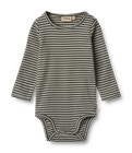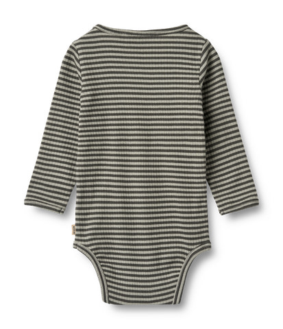 Langærmet rib body med striber i blødt økologisk bomuld til din baby. Wheats basis body er en sand klassiker i garderoben, når det kommer til småbørn. Denne body har trykknapper på den ene skulder samt i bunden for bedre komfort, når du skal klæde dit barn på. Brug bodyen som den inderste del i ethvert outfit, da den er blød at have tæt på huden.