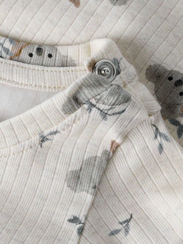Boala langærmet body fra NAME IT er blød og behagelig for de mindste. Lavet i bomuld, lyocell og elastan, så den er både åndbar og strækbar. Sødt koala-print gør den ekstra sjov at have på.