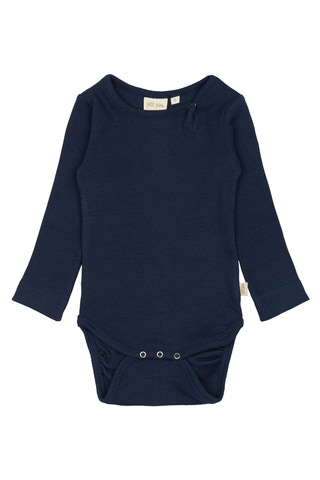 Petit Piao ensfarvet body er i økologisk bomuld. I halsåbningens venstre side er der en trykknap som gør det nemt at få den over barnets hoved. I bunden er der tre trykknapper, som gør det let at stifte barnet. Body'en er strækbare og fremstillede af en lækker blanding af bomuld og modal. Ribkvaliteten giver et meget fleksibelt materiale, så barnet har let ved at bevæge sig og lege.