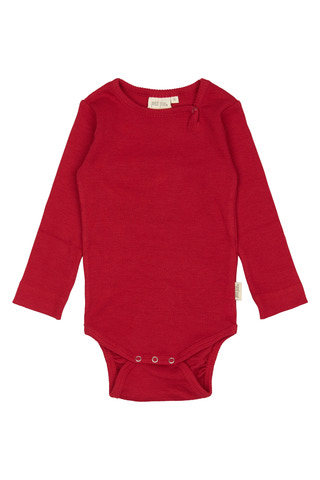 Petit Piao ensfarvet body er i økologisk bomuld. I halsåbningens venstre side er der en trykknap som gør det nemt at få den over barnets hoved. I bunden er der tre trykknapper, som gør det let at stifte barnet. Body'en er strækbare og fremstillede af en lækker blanding af bomuld og modal. Ribkvaliteten giver et meget fleksibelt materiale, så barnet har let ved at bevæge sig og lege.