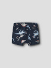 NAME IT Boxershort 3-Pak i Navy blazer er et skønt valg til børn, der ønsker både komfort og sjovt design. Pakken indeholder tre par boxershorts: én med sejt dinosaur-print, én i klassisk navy og én i lys blå. Den bløde og strækbare bomuldskvalitet føles behagelig mod huden og giver masser af bevægelsesfrihed. Den elastiske talje sikrer, at boxershortsene bliver siddende, hvor de skal, og gør dem nemme at tage af og på. Med denne 3-pak får du både funktionalitet og et sjovt udtryk, som børnene vil elske.