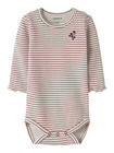 Bripa langærmet body fra NAME IT er lavet i blød, økologisk bomuld, som er skånsom mod barnets hud. Den har fine striber og en sød detalje på brystet. Bodyen har praktiske trykknapper, så den er nem at tage af og på.