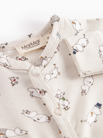 Enkel langærmet bodystocking, der bliver lukket med trykknapper hele vejen ned foran samt mellem benene for nem bleskiftning. Jersey med elastan