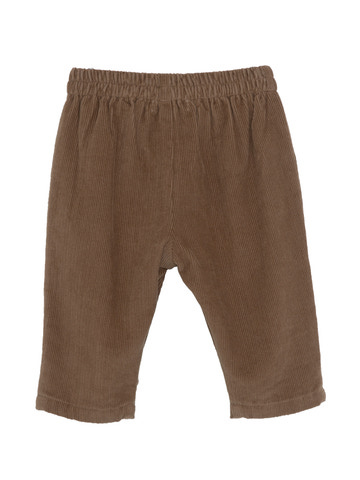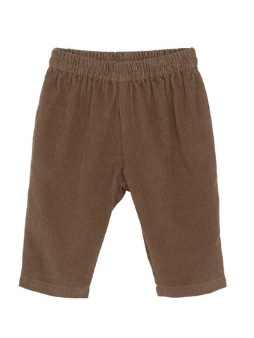 Nøddebrune fløjlsbukser til baby. Let og løst design med elastik i taljen. Fløjlskvaliteten er småriflet og vævet i 100% økologisk og fuld GOTS certificeret bomuld.