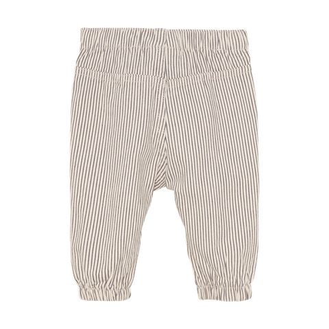 Minymo bukser med striber i farven White Swan er et skønt valg til de mindste. Bukserne har et tidløst og klassisk udtryk med fine, smalle striber, der passer til enhver garderobe. Den elastiske talje med snøre gør det nemt at tilpasse pasformen, så barnet altid har det behageligt. Bukserne er fremstillet i bløde materialer, der føles rare mod huden og giver god bevægelsesfrihed, uanset om barnet leger eller slapper af. Elastikken ved benene sikrer, at bukserne sidder godt og ikke glider op, hvilket gør dem ideelle til både leg og afslapning. De er nemme at kombinere med både t-shirts og bluser, og kan bruges til både hverdag og fest.