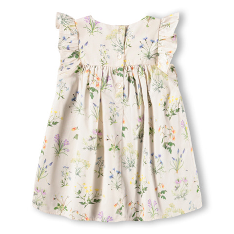 Cacao Kjole - Primavera fra Molo er en sød sommerkjole i blød bomuld. Kjolen har fine blomsterprint og flotte flæser på skuldrene, som gør den ekstra festlig. Perfekt til både hverdag og fest!