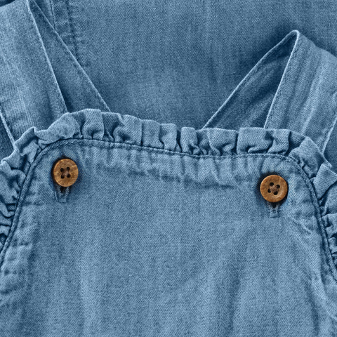 kundeservice@pixizoo.dkChambray Smækbukser fra Minymo er et skønt valg til både hverdag og festlige lejligheder. Bukserne er lavet i en let og blød chambray-kvalitet, der giver masser af bevægelsesfrihed og komfort til de mindste. De justerbare skulderstropper med knapper gør det nemt at tilpasse længden, mens elastikken ved anklerne sikrer, at bukserne sidder godt uden at stramme. Flæsedetaljerne langs brystet tilføjer et sødt og moderne touch, og det klassiske "faded denim" look passer til det meste i garderoben. Perfekte til leg og hygge hele dagen.