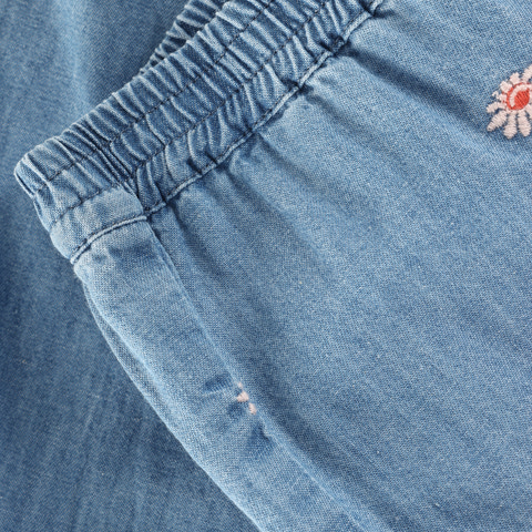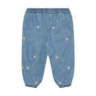 kundeservice@pixizoo.dkCharmbray Bukser fra Minymo i farven Faded Denim er et skønt valg til hverdagsgarderoben. Bukserne er lavet i en blød og let denimkvalitet, der føles behagelig mod huden og giver masser af komfort til leg og bevægelse. De fine broderede blomsterdetaljer tilfører et sødt og feminint udtryk, mens elastikken i taljen og ved anklerne sikrer, at bukserne sidder godt uden at stramme. Den afslappede pasform gør dem perfekte til både dagpleje og hyggestunder derhjemme. Et par alsidige bukser, der nemt kan styles med både t-shirts og bluser.
