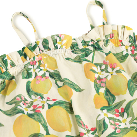 Connie Kjole - Citrus fra Molo er en skøn sommerkjole i økologisk bomuld. Kjolen har et farverigt citrusprint, der gør den ekstra sjov at have på. Perfekt til varme dage og leg.