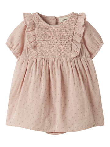 Dembe Bodykjole fra Lil' Atelier er lavet af blød økologisk bomuld, perfekt til sart børnehud. Kjolen har en sød peach whip farve og fine detaljer, der gør den ekstra hyggelig til både leg og fest.
