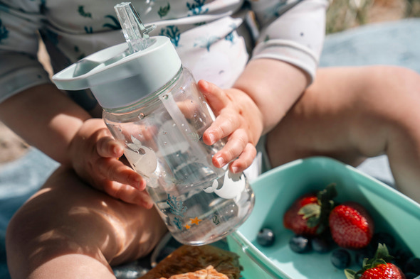 Hvad enten det er til en dag i skolen, en picnic i parken eller små eventyr i hverdagen, er denne drikkedunk en tryg og let følgesvend for små opdagelsesrejsende. Den ligger let i små hænder og passer ned i enhver rygsæk. Og når den sidste dråbe er drukket, er den så let som en fjer - klar til at blive båret hjem igen. Drikkedunken er fremstillet af klart, slidstærkt PET-plast, der er testet og godkendt til fødevarer. Den rummer op til 400 ml, og det transparente design gør det nemt for barnet at se, hvad der er indeni - perfekt til hverdagens små og store oplevelser.