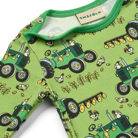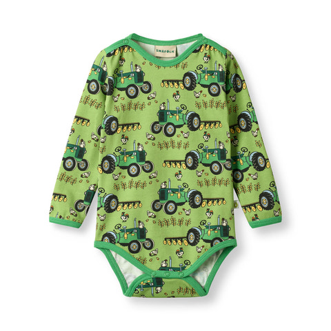 Elstar langærmet body fra Småfolk er lavet i blød bomuld og har et sjovt traktorprint, som børn vil elske. Perfekt til hverdagsbrug med god bevægelsesfrihed og komfort.