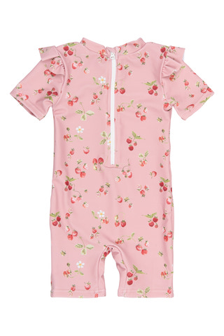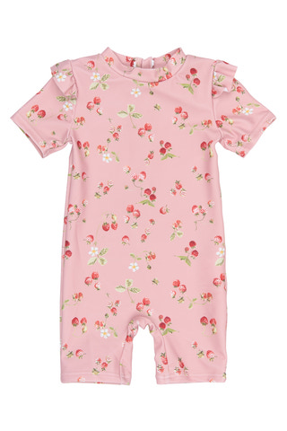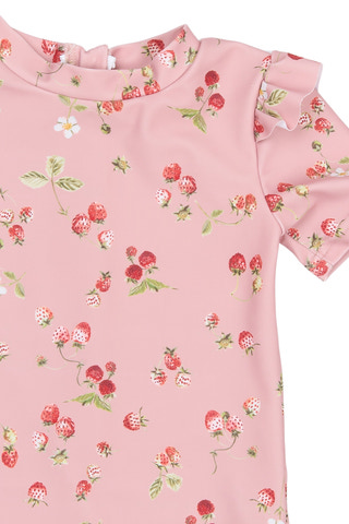 Sød badedragt fra Petit Piao i farven Misty Rose med fine jordbærprint. Perfekt til sjov ved stranden eller poolen!