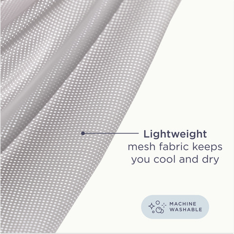 Embrace Soft Air Mesh er fremstillet af Soft Air Mesh, som er en polyester- og spandexblanding, der skaber et blødt, køligt og åndbart design. Airy Pin Dot Knit med Soft Air Mesh på skuldrene og i bagpanelet giver målrettet åndbarhed, hvor det er mest nødvendigt. Stoffet er absorberende og fjerner sveden fra både dig og din baby, og det tørrer hurtigt, så du forbliver behagelig, kølig og tør.