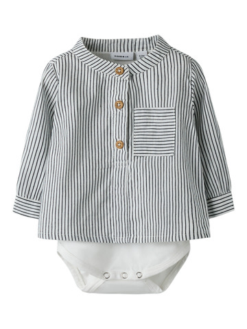 kundeservice@pixizoo.dkFar langærmet skjortebody fra NAME IT er lavet i blød, økologisk bomuld, som er skånsom mod barnets hud. Skjortebodyen har fine striber, praktiske knapper foran og trykknapper mellem benene, så den er nem at tage af og på. Perfekt til både hverdag og festlige lejligheder!