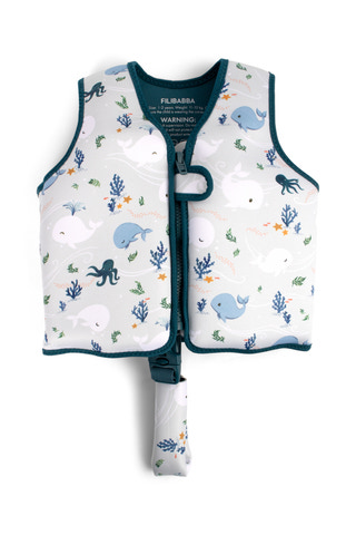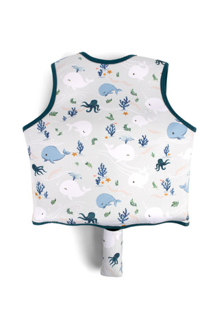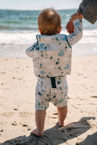 Svømmevesten følger barnets udvikling og kan justeres løbende. Når barnet bliver mere trygt i vandet, kan de indbyggede skumelementer fjernes – ét ad gangen, fra det laveste til det højeste nummer. På den måde reduceres støtten gradvist, indtil barnet er klar til at svømme selv. Derefter kan vesten stadig bruges som ekstra UV-beskyttelse under leg i solen.