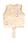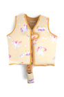 Svømmevesten følger barnets udvikling og kan justeres løbende. Når barnet bliver mere trygt i vandet, kan de indbyggede skumelementer fjernes – ét ad gangen, fra det laveste til det højeste nummer. På den måde reduceres støtten gradvist, indtil barnet er klar til at svømme selv. Derefter kan vesten stadig bruges som ekstra UV-beskyttelse under leg i solen.