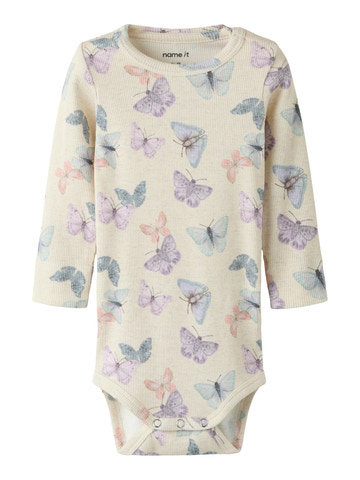 Filua langærmet body fra NAME IT er lavet i blød økologisk bomuld, modal og elastan. Perfekt til børn, da den er behagelig og fleksibel. Sødt sommerfugleprint gør den ekstra fin.
