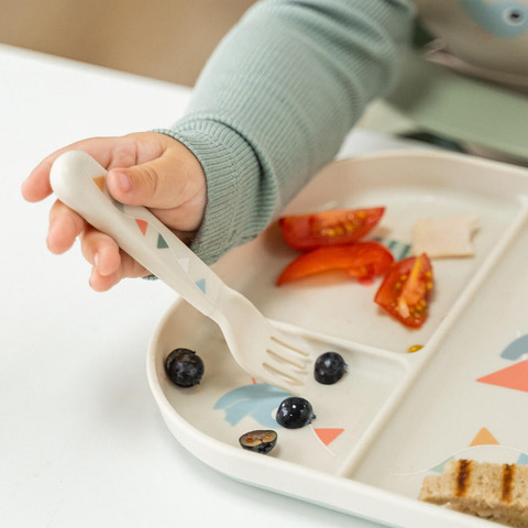 Foodie bestiksæt Celebration Sand fra Done By Deer er det perfekte valg til barnets første måltider. Bestikket er ergonomisk udformet, så det ligger godt i små hænder og gør det nemt for barnet at lære at spise selv. De bløde former og de farverige detaljer gør måltidet sjovere, mens det slidstærke materiale sikrer lang holdbarhed. Sættet består af en gaffel, kniv og ske, som alle tåler opvaskemaskine, hvilket gør rengøringen nem for forældrene.