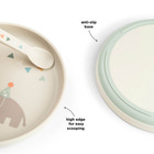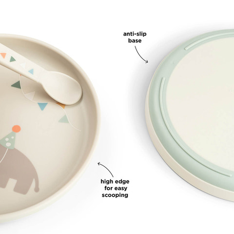 Foodie tallerken Celebration Sand fra Done By Deer er designet til at gøre måltiderne sjovere for de mindste. Tallerkenen har et charmerende motiv med festklædte dyr og glade farver, der indbyder til hyggelige stunder ved bordet. Den skridsikre bund sikrer, at tallerkenen bliver, hvor den skal, selv når små hænder spiser selv. Tallerkenen er fremstillet i robust materiale, der tåler både opvaskemaskine og mikroovn, hvilket gør den nem at rengøre og praktisk i hverdagen. Perfekt til både morgenmad, frokost og aftensmad.