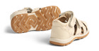 Frei prewalker sandalen har to justerbare velcrostropper på tværs af foden, der gør skoen nemmere at træde ned i for dit barn og giver dem god stabilitet. Den har en lukket tå for ekstra beskyttelse og en lukket hæl for ekstra stabilitet. Wheat's prewalkers er lette, fleksible og komfortable for barnet at have på, og de er lavet til at beskytte de små fødder, når de begiver sig ud på deres første eventyr. Sandalen er lavet i naturligt læder med ruskindsdetaljer fra LWG-garverier. For at sikre, at ingen giftige metaller rører huden, har vi foret vores sandaler med krom- og metalfrit læderfor. Læderet er garvet uden brug af krom- og metaller, og vil derfor med tiden få en skøn patina. Indersålen er lavet med latex og beklædt med krom-og metalfrit garvet læder. Latex er et naturprodukt, der er åndbart og fleksibelt med en trampolineffekt for behagelige skridt. Ydersålen er lavet af gummi, som er meget let og giver en fantastisk fleksibilitet. Sandalerne er normale i størrelsen. Anbefalet voksetillæg: 1-1,5 cm