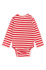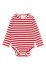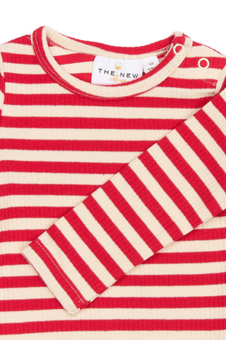 Denne langærmede body fra THE NEW Siblings er både blød og praktisk – en uundværlig del af garderoben for de små. Den har et klassisk stribet design og en tætsiddende pasform, hvilket gør den behagelig at have på under andet tøj. Bodyen lukkes nemt med trykknapper på skulderen og nederst, hvilket gør det lettere at få den af og på. Perfekt til både hverdag og leg.