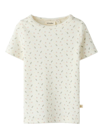 Gago T-Shirt fra Lil' Atelier er lavet af blød økologisk bomuld, lyocell og elastan, som sikrer god komfort og bevægelsesfrihed. Den fine farve Coconut Milk og det søde blomsterprint gør den perfekt til både hverdag og fest.