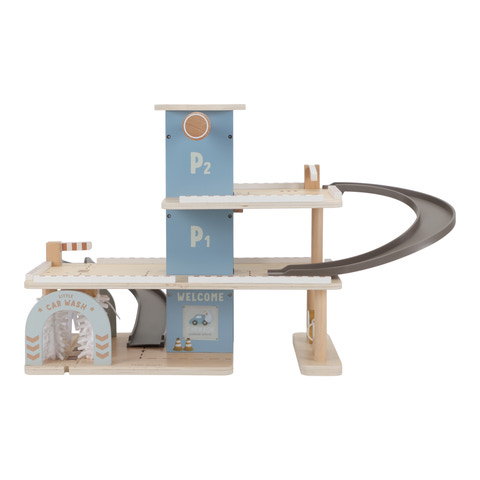 Denne flotte trægarage er den perfekte udvidelse til Little Dutch Train Track XL og byder på masser af action! Med bilvask i stueetagen, to parkeringsniveauer, en elektrisk ladestation og en helikopterplatform på toppen er der lagt op til timevis af fantasifuld leg.