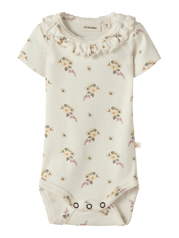 Gayo Sio kortærmet slim body fra Lil' Atelier er perfekt til små eventyrere! Den er lavet i blød bomuld, lyocell og elastan, som giver god komfort og bevægelsesfrihed. Bodyen har sødt blomsterprint og fine flæser ved halsen.