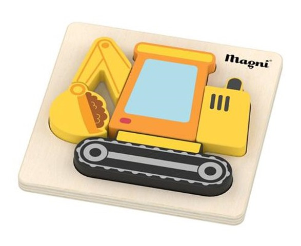 Gravemaskine puslespillet fra Magni er et skønt og lærerigt legetøj til de mindste. Med sine klare farver og enkle design fanger det hurtigt barnets opmærksomhed og gør det sjovt at lære. Puslespillet består af få, store brikker, som er nemme for små hænder at håndtere, og det robuste træ sikrer, at det kan holde til mange timers leg. Det er ideelt til at styrke barnets finmotorik, hånd-øje-koordination og logiske tænkning, samtidig med at det giver en god introduktion til puslespillets verden. Perfekt som gave eller til hyggelige stunder derhjemme.