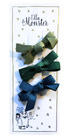 Grøn som blade, græs og skovens skygge. Disse tre sløjfer bringer naturens ro med sig – perfekte til både vilde eventyr og stille øjeblikke. De sidder sikkert i håret og følger med i alt fra klatring til kram.