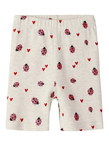 Søde Haline shorts fra NAME IT i farven Peyote melange. Shortsene er lavet i blød økologisk bomuld, modal og elastan, som gør dem ekstra behagelige at have på. De har et sjovt print med mariehøns og små hjerter, der gør dem perfekte til leg og hverdag.