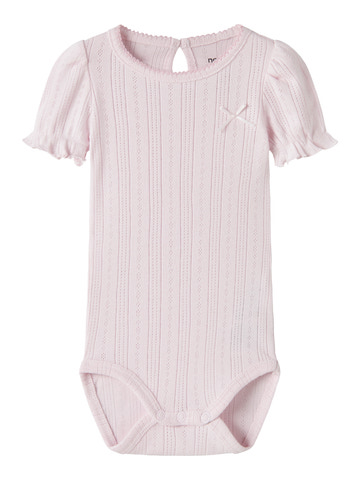 Happy kortærmet body fra NAME IT er lavet i blød, økologisk bomuld, som er skånsom mod barnets hud. Perfekt til både leg og afslapning.