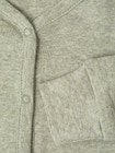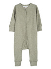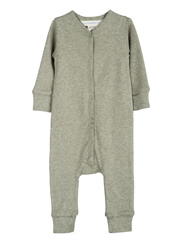 Mellem brun Almond og offwhite stribet heldragt med fødder til baby. Dragten har trykknapper ved benene og konvolutlukning ved skulderne. Skøn sove og hyggedragt. Blød melange kvalitet i 100% økologisk bomuld og GOTS certificering