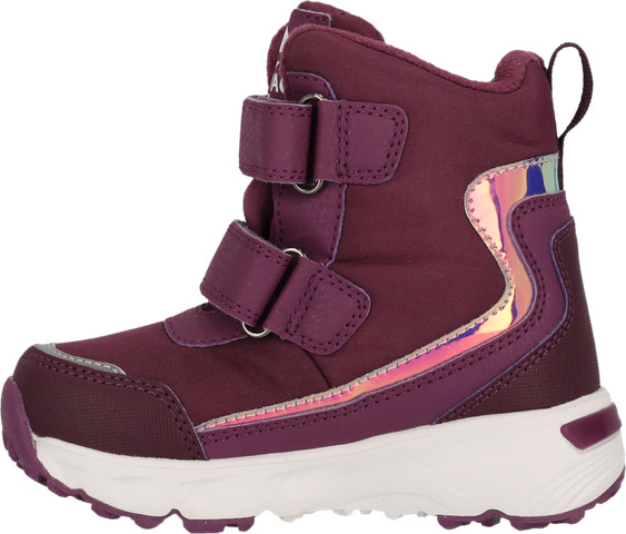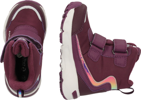 Støvlerne er lavet i vandtætte materialer og har et blødt fleecefor, der giver ekstra varme og komfort. Med praktiske velcrolukninger er det hurtigt og nemt for barnet selv at tage støvlerne af og på – ideelt til hverdagens eventyr.