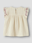 Himmas Bluse fra NAME IT er lavet i blød, økologisk bomuld – perfekt til sart børnehud. Den fine farve Almond Milk og de søde blomsterbroderier på ærmerne gør blusen ekstra charmerende.