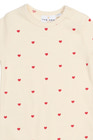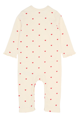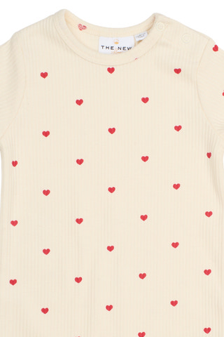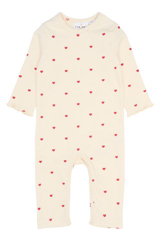 Denne heldragt fra THE NEW Siblings er både yndig og praktisk – perfekt til hverdagens små eventyr. Den har et charmerende all-over print med små hjerter, som giver et sødt og legende udtryk. Dragten har lange ærmer og ben samt praktiske trykknapper ved skulderen og langs benene, hvilket gør den nem at tage af og på.
