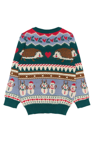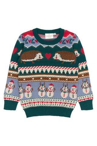 kundeservice@pixizoo.dkDenne julesweater fra THE NEW Siblings sprudler af charme og vinterstemning. Med farverige og detaljerede motiver som pindsvin, snemænd, hjerter og klassiske juledetaljer, er den et festligt valg til både hverdag og særlige lejligheder i feriesæsonen. Den bløde strik og ribkanter ved hals, ærmer og kant sikrer en behagelig pasform – perfekt til julehygge og vintersammenkomster.