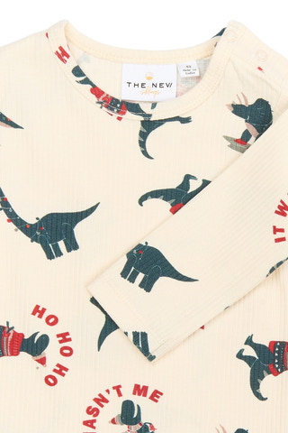 TNSB Holiday Rib Suit fra THE NEW Siblings er en skøn og festlig heldragt til de mindste. Den fås i en sjove variant – med juledinosaurer – med et charmerende all-over print, der spreder ægte julehygge. Dragten har lange ærmer og ben samt praktiske trykknapper ved skulderen og langs indersømmen, som gør den nem at tage af og på.