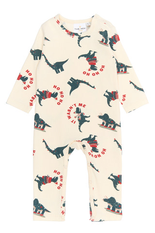 kundeservice@pixizoo.dkTNSB Holiday Rib Suit fra THE NEW Siblings er en skøn og festlig heldragt til de mindste. Den fås i en sjove variant – med juledinosaurer – med et charmerende all-over print, der spreder ægte julehygge. Dragten har lange ærmer og ben samt praktiske trykknapper ved skulderen og langs indersømmen, som gør den nem at tage af og på.